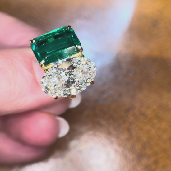 Emerald & Oval Diamond Engagement Ring, YG
