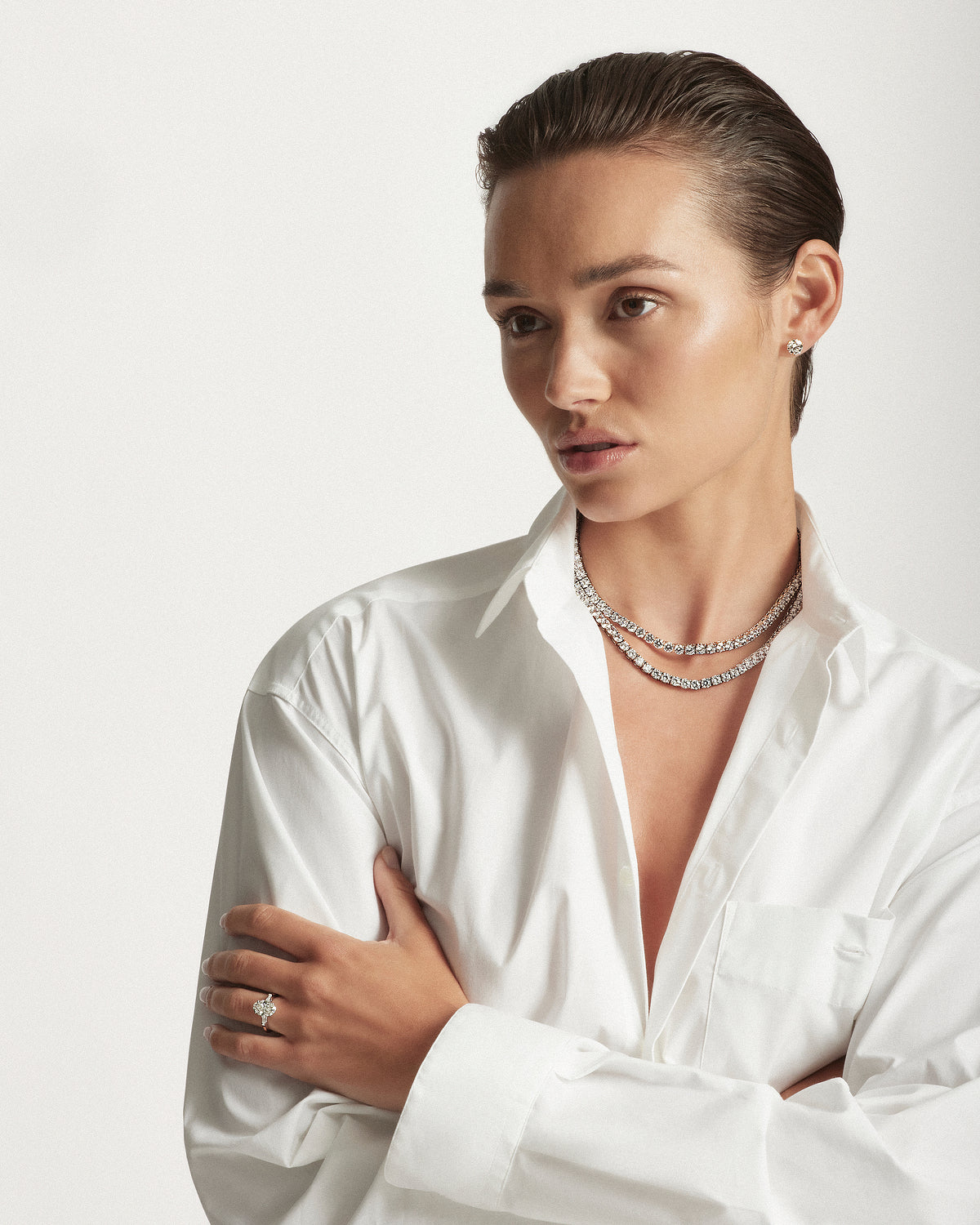 Kelly Extended Diamond Tennis Necklace, 64ct, WG