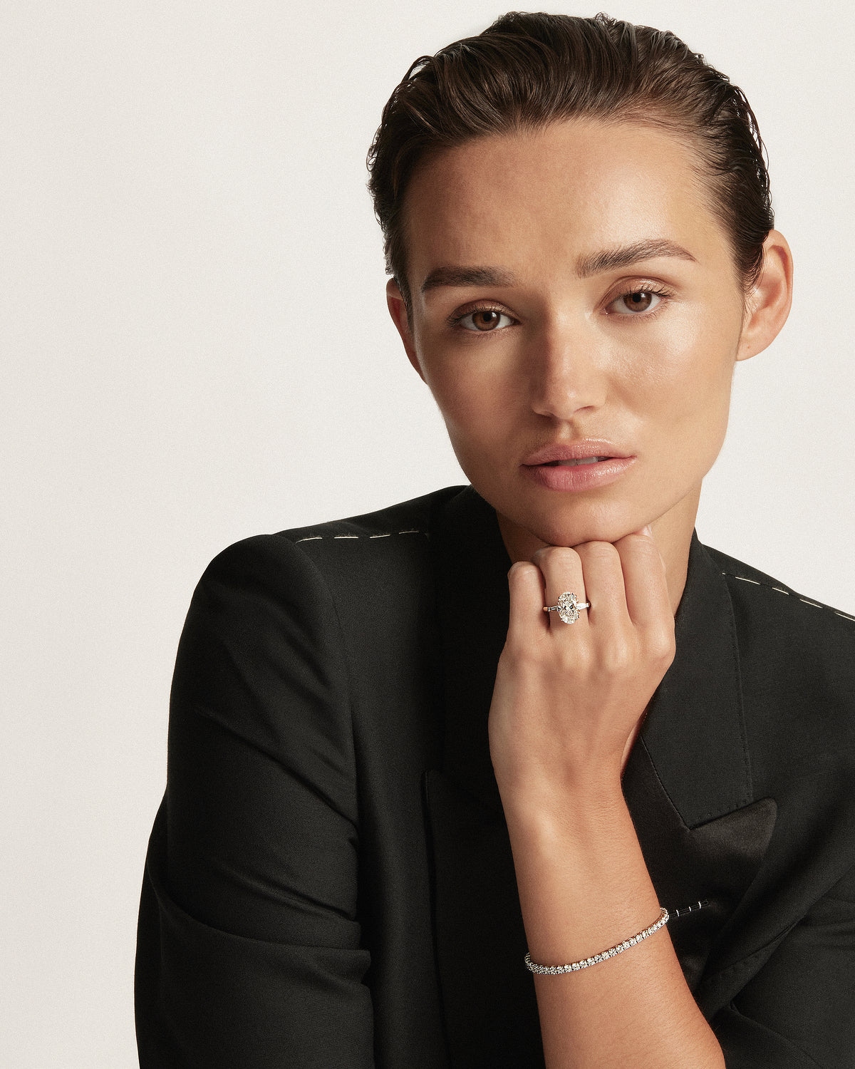 The Oval Diamond Engagement Ring with Baguette Diamond Shoulder Stones