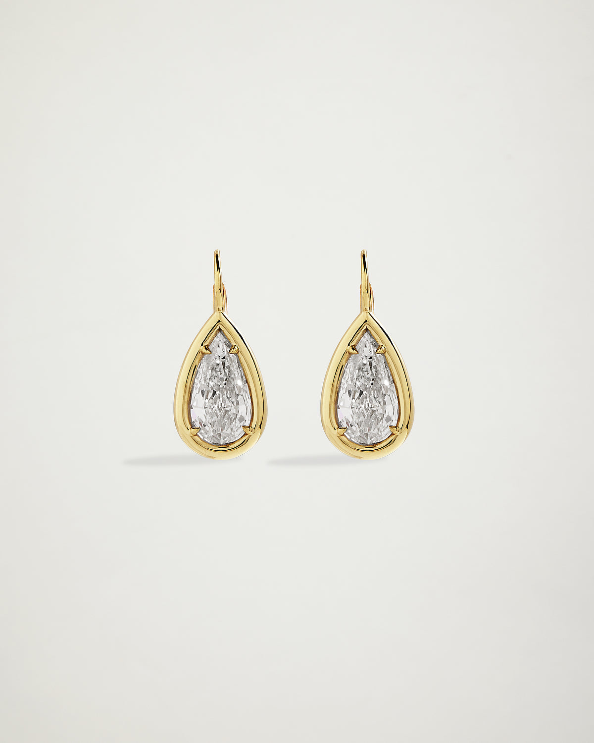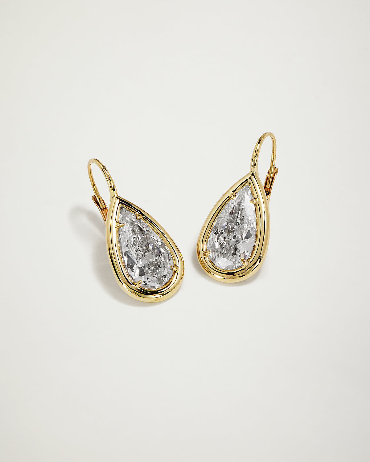 This stunning pair of Rahamanov Pear Natural Hook Earrings features 2.5 carat pear cut natural diamonds, GIA-certified for their superior quality and brilliance, set in luxurious 18ct yellow gold. With a total diamond weight of 5 carats, these earrings embody timeless elegance and the impeccable design synonymous with Rahaminov Diamonds of Los Angeles