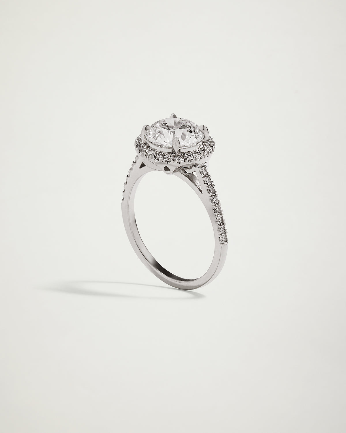 Round Brilliant Cut Diamond Engagement Ring with Halo, WG