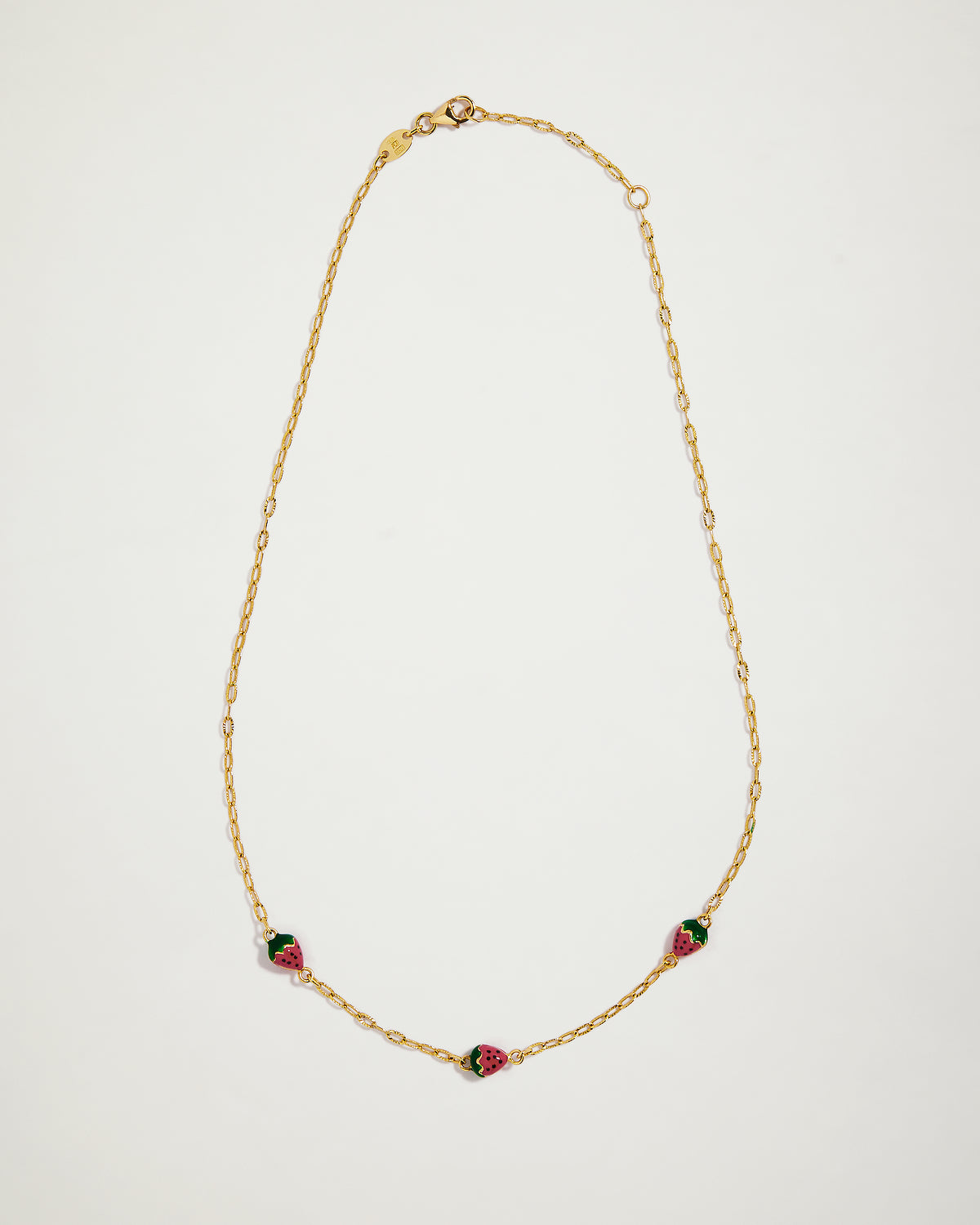 A sweet symbol of joy and nostalgia, designed to be treasured for years to come. Crafted in 14k gold with hand-painted enamel strawberries, this piece makes a meaningful gift for a christening, goddaughter, or special occasion.