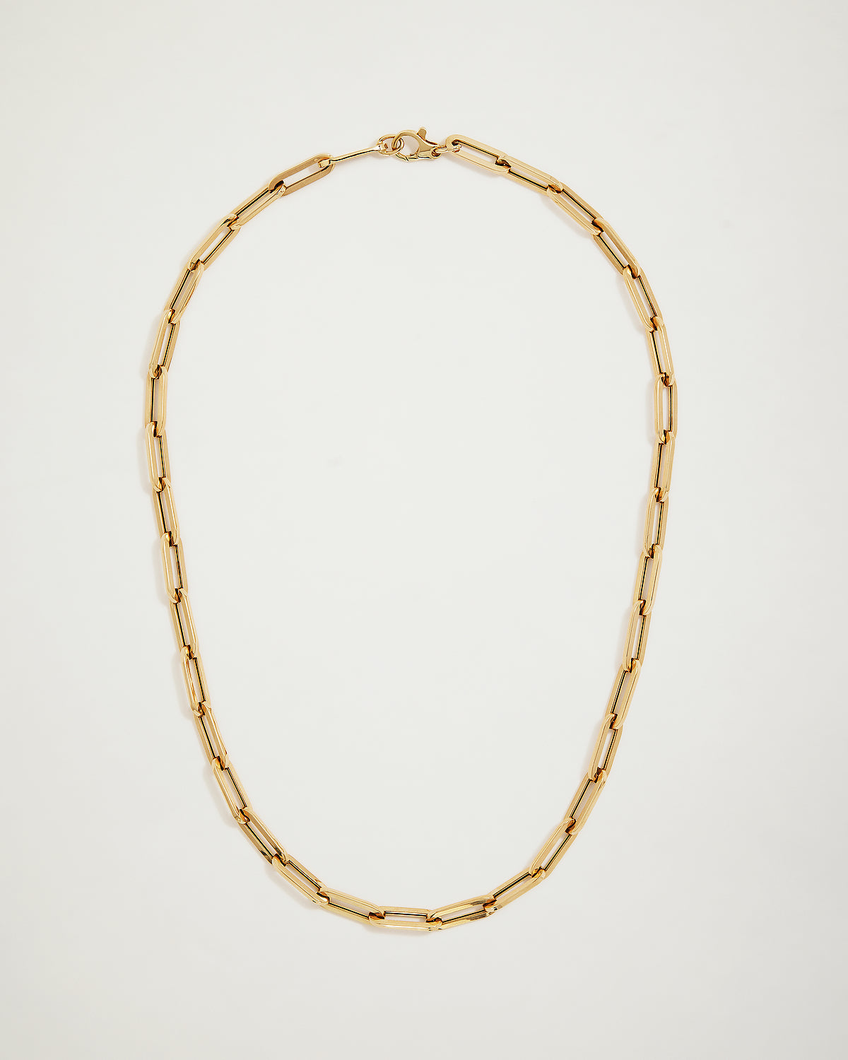 The Paperclip Chain Necklace embodies a bold, contemporary design.