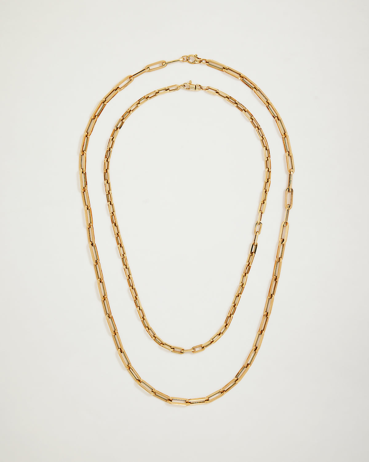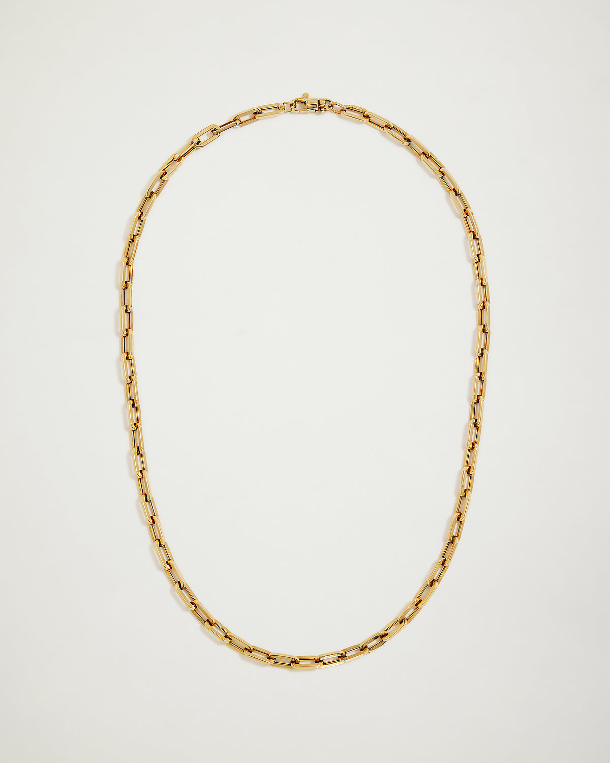 The Petite Paperclip Chain Necklace embodies a bold, contemporary design.