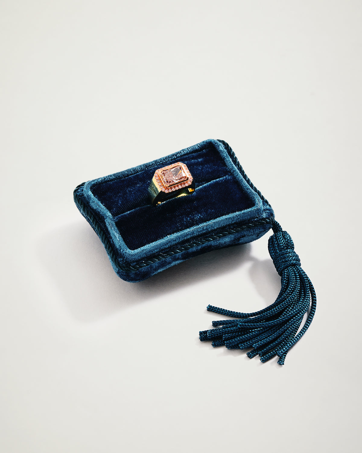 The Soul Mate Encrusted Radiant Pink Diamond Ring is a one-of-a-kind symbol of love, meticulously handcrafted in house by Benjamin Hart, Master Craftsman and Founder.