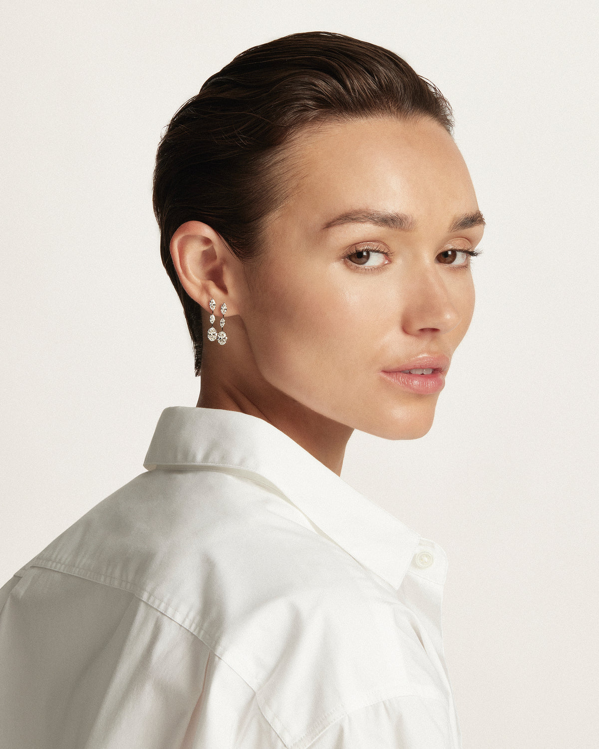 The Trilogy Diamond Drop Earrings, crafted in 18k white gold, feature a striking combination of marquise-cut and diamonds. Each earring is set with a 1.00ct IGI-certified oval diamond, beautifully paired with two accent marquise diamonds, creating a sparkling, attractive drop.