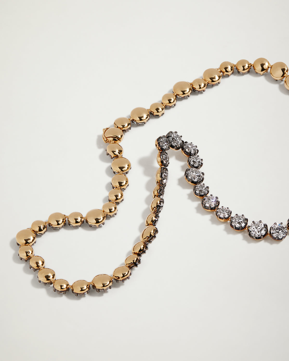 The Victorian inspired European Cut diamond necklace is adorned with Old European round cut laboratory-grown diamonds, expertly set in 18 karat blackened yellow gold.